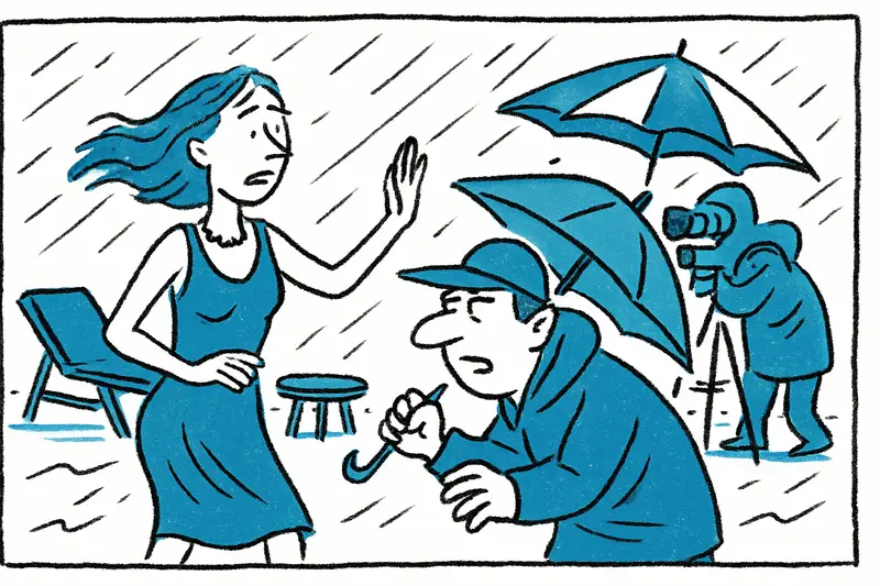 La idea visual evocaba el verano: hamacas claras, elegantes sombrillas, tumbonas de madera y mesitas con cócteles. Esos detalles, se espera, aparecerán solo un instante en el spot final; para el equipo significaron montaje, ajustes y mucho trabajo hasta que la toma quedó cerrada. Que la lluvia golpeara la lona y las olas taparan a veces los diálogos añadió un toque mallorquín: la isla actuó como director y codirector a la vez.